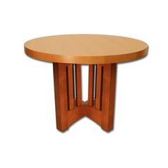 The Craftsman 42'' Round Table has a solid wood full length cross base with 8 slats for added support. 2 1/2'' thick laminate top with band surrounding table. Coated with a pre-catalyzed UV finish lacquer for a hard and durable finish.